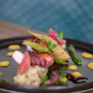 Vous pourrez déguster des plats de cuisine française servis au restaurant Al Trayou Beach qui se trouve à 13 minutes de marche des Bulles de Mer - Hotel Spa sur la Lagune.